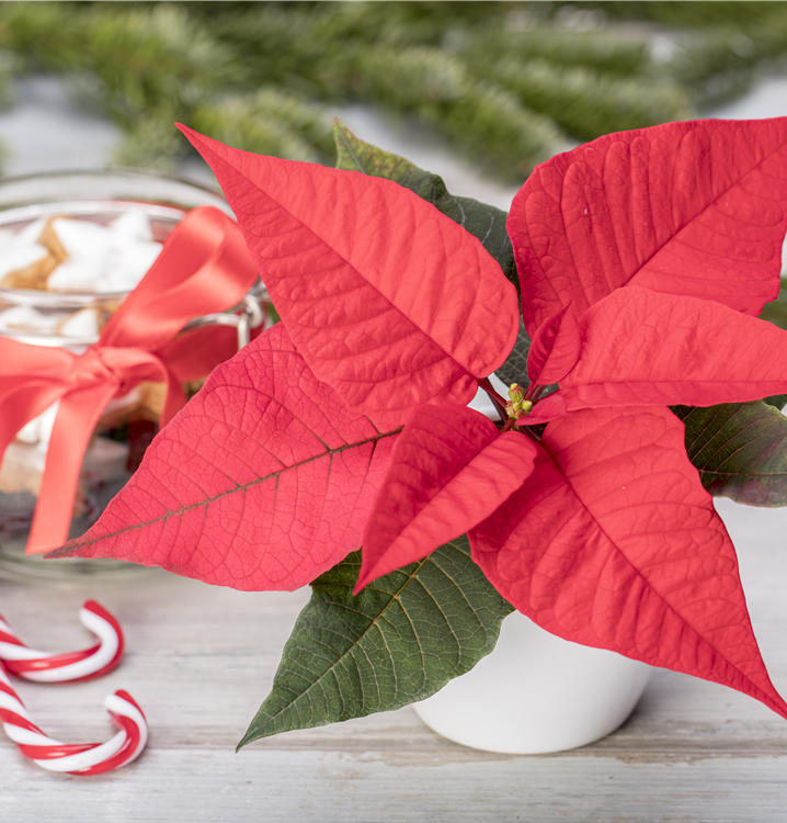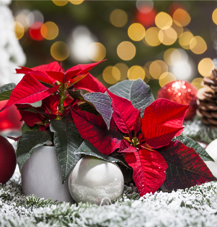 Der Weihnachtsstern (Euphorbia pulcherrima) blüht über Monate hinweg. Je nach Sorte, erscheinen die dekorativen Blüten in den Farben Rot, Rosa und Weiß. Bevorzugt wird ein sonniger Standort und eine durchlässige Erde.