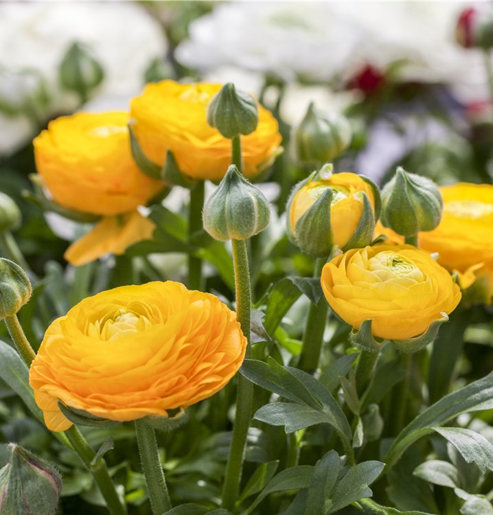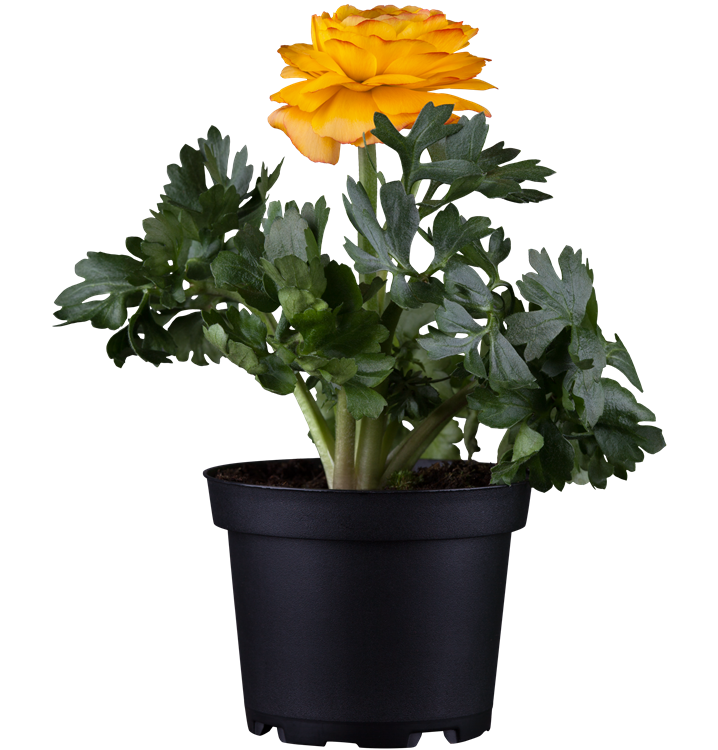Die Ranunkel (Ranunculus asiaticus) ist eine beliebte, pflegeleichte Pflanze für den Balkon, die während des Frühjahrs unzählige weiße, gelbe, orangefarbene, rote oder rosafarbene Blüten bildet. Die mittelgrünen Blätter sind gefingert. Ein sonniger Standort und ein durchlässiges Substrat werden bevorzugt.