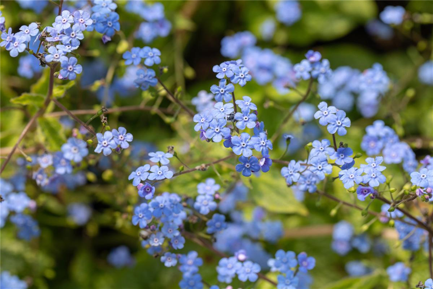 Brunnera macrophylla 'Alexander´s Great' Bodendecker pflanzen bedeutet Freude Pflanzen. Denn die grünen Gartenbewohner bringen auch in die dunkelsten Ecken ein bisschen Farbe. Dabei gibt es die verschiedensten Arten und Sorten, die alle für sich etwas ganz Besonderes sind. Besonders beliebt ist das Kaukasus-Vergissmeinnicht, dass nicht nur hübsche Blüten zu bieten hat, sondern auch mit Blättern in einem ganz besonderen Muster daherkommt. Es ist besonders für schattige Plätze ohne direkte Sonne geeignet und damit die perfekte Unterpflanzung für Bäume und Sträucher. Gepflanzt werden fünf bis acht Pflanzen je Quadratmeter. Haselwurz gehört ebenfalls zu den beliebten Bodendeckern. Beim Bodendecker pflanzen sollte man hier 15 bis 20 Pflanzen auf einen Quadratmeter setzen, damit eine dichte Blätterdecke entsteht. An halb- bis vollschattigen Standorten kommen die Pflanzen dann ganz groß raus. Die Kriechspindel überzeugt mit ihren immergrünen Blättern und ist damit auch im Winter ein echtes Highlight. Mit ihren Trieben kann sie sogar an Mauern hochklettern und das bis zu zwei Meter oder höher. Dieser Bodendecker fühlt sich allerdings in der Sonne am wohlsten und sollte maximal im Halbschatten gepflanzt werden. Zu weiteren Lieblingen gehören Lungenkraut, Elfenblume, Frauenmantel, Teppichhartriegel und Polsterglockenblume.
