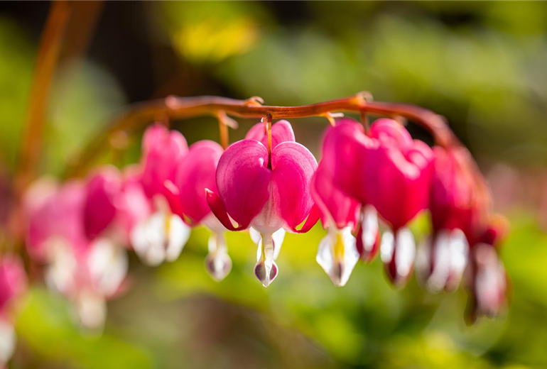 Wer es besonders anspruchslos mag, der ist bei Pflanzen für den Schatten mit der Funkie am besten beraten. Diese pflegeleichte Staude ist bei vielen Gartenbesitzern beliebt und das nicht ohne Grund! Sie macht kaum Arbeit, entwickelt sich und wächst fast von allein und hat wunderschöne Akzente zu bieten. Als Blattschmuckstaude findet die Funkie immer wieder ihren Platz in unseren Gärten und ein besonderes Highlight sind dabei dieses Mal nicht die Blüten, obwohl die auch wunderschön anzusehen sind. Es sind die Blattmuster, die die Staude zu bieten hat und die sie so einzigartig machen. Ein weiterer Kandidat, wenn es um Pflanzen für den Schatten geht, ist der Farn. Er ist die klassische Waldpflanze und daher wenig Licht gewöhnt. Er braucht nicht viel um glücklich zu sein und macht ebenso wie die Funkie wenig Arbeit. Das Tränende Herz kommt dann noch mit wunderschönen Blüten um die Ecke, die ihren Namen alle Ehre machen. Eine besondere Pflanze für den Schatten, die mit bunten Blüten für zusätzliche farbliche Akzente sorgt. Auch als Herzerlstock bezeichnet, ist kaum eine Pflanze im Garten romantischer. Ursprünglich kommt es aus lichten Schattenwäldern in Korea und China und ist bei uns mittlerweile als Gartenpflanze sehr beliebt. Geht’s noch romantischer? Na sicher! Aufgrund der Blütenform wird das Tränende Herz der Gattung der Herzblumen zugeordnet.