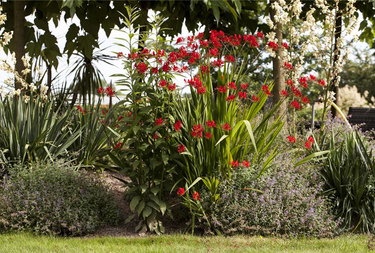 Für Sommerblüher kommt jetzt die Zeit, sich auf die Blüte vorzubereiten. Dafür werden die Zwiebeln und Knollen zunächst eingepflanzt. Richten Sie sich dabei nach den Temperaturen, denn nicht alle Zwiebeln und Knollen vertragen Spätfrost. Frostharte Blumenzwiebeln wie Lilien können direkt in den Boden, sobald dieser aufgetaut ist. Andere Pflanzen sollten Sie dagegen erst nach den Eisheiligen auspflanzen, wenn nicht mehr mit Frost zu rechnen ist. Das gilt zum Beispiel für Anemonen, Freesien, Montbretien oder Steppenkerzen, die aus frostfreien Regionen in Südafrika und Südamerika stammen und unsere Kälteperioden nicht gut überstehen. Auch Dahlien gehören zu den empfindlichen Sommerblühern, allerdings kann man versuchen, sie bereits im März in Töpfen vorzuziehen. Das beschleunigt die Entwicklung und im Mai werden sie dann umgepflanzt.