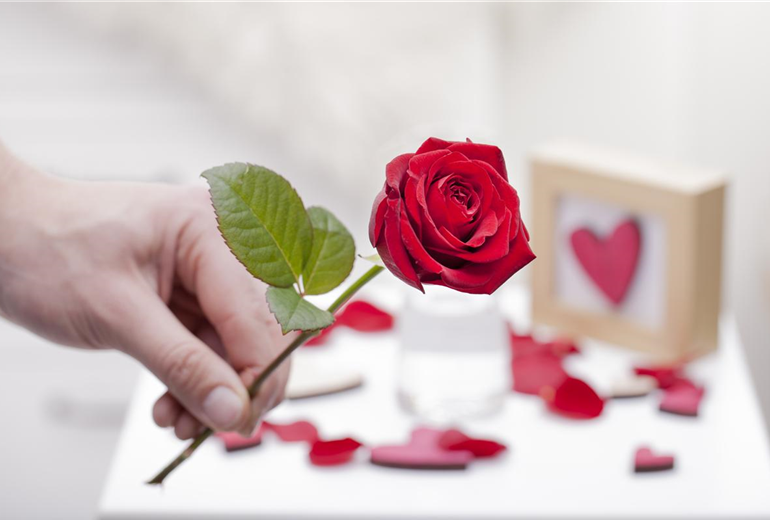 Eine rote Rose zum Valentinstag ist der Liebesbeweis schlechthin. Sie ist unmissverständlich ein Zeichen dafür, dass der Beschenkte mehr ist, als ein Freund. Im Allgemeinen bedeutet es sogar die ganz große, leidenschaftliche Liebe. Damit man nicht unnötig Druck in die Beziehung bringt, sollte man also lieber mit einer etwas unschuldigeren Farbe beginnen. Eine rosafarbene Rose ist beispielsweise sehr gut für die Flirtphase geeignet. Sie zeigt dem Gegenüber, dass man an ihn gedacht hat, erwartet aber noch nicht die ganz großen Gefühle. Für einen unschuldigen ersten gemeinsamen Valentinstag ist sie also eine sehr gute Wahl.