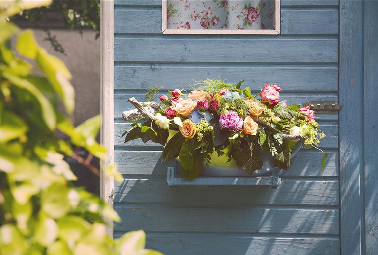 Gerade bei Haushaltsauflösungen kommen die größten Schätze zum Vorschein. Alte Kommoden, durchgesessene Sessel, verbeulte Töpfe und zerkratzte Holztüren müssen nicht auf dem Sperrmüll landen, sondern machen im Garten mit einem kleinen Umstyling namens Upcycling einen ganz neuen Eindruck. Wie wäre es, eine alte Tür neu zu bemalen und als Dekoration im Garten zu benutzen? Daran lassen sich Bilder aufhängen und ein paar Blumen vor oder an der Tür machen die neu gestaltete Holztür zu einem echten Hingucker. Auch alte Kommoden oder Schränke können ganz einfach neu angestrichen und in den Garten gestellt werden. Hier eine bepflanzte Schublade, da eine Ablage für Pflanzgefäße und Gartenutensilien. Die alten Schätze sind nicht nur hübsch, sondern auch nützlich. Upcycling ist einfach und macht richtig Spaß!